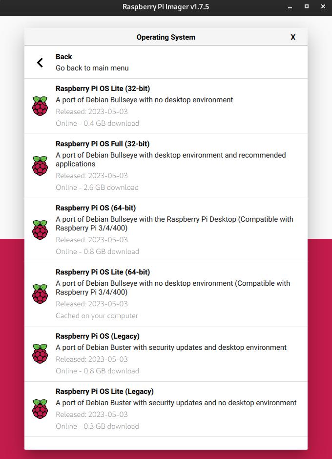 OK. Now click on the “CHOOSE OS” button and you will be presented with the following screen: