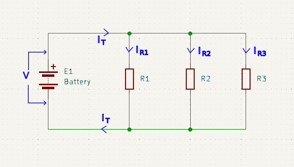 \(I_T = I_{R1} + I_{R2} + … + I_{Rn}\) then substituting V/R for I