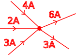 The sum of the currents in to a node are equal to the sum of the current going out of a node.