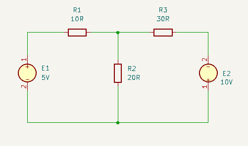 To keep this example as clear and straight forward as possible I’m going to use a very simple circuit, which could easily be solved by one of the simpler techniques such as superposition. However, the process and steps are the same, there would just be more loops to analyse.